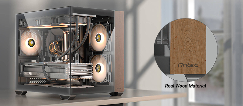 לוחות הזכוכית השמאליים והקדמיים של CX600M Wood ARGB מציעים תצוגת נוף מלאה של הבנייה שלך, ויוצרים חלון ראווה מדהים לרכיבים שלך.