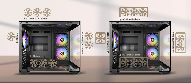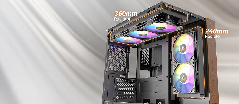 תמיכה בהתקנה בו זמנית של רדיאטור 360 מ"מ למעלה ורדיאטור 240 מ"מ בצד.