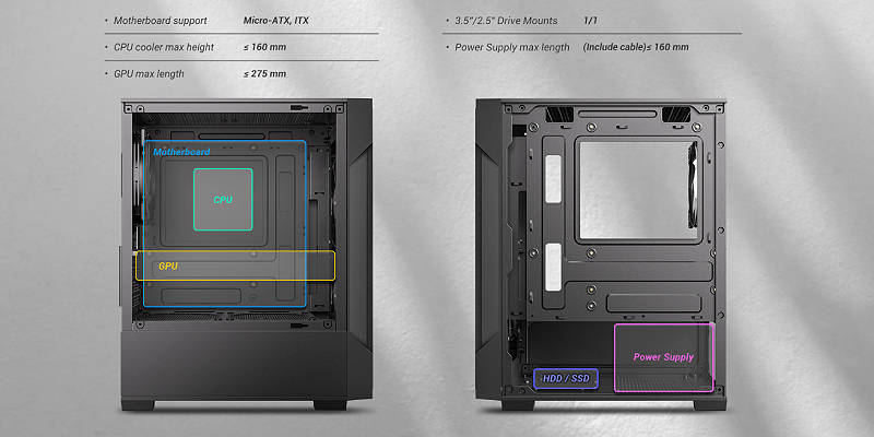 ניתן להתקין בו זמנית 7 מאווררים בגודל 120 מ"מ.