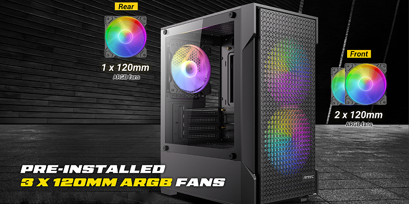 3 מאווררי ARGB בגודל 120 מ"מ מותקנים מראש.