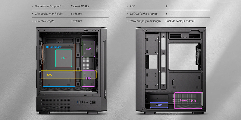 לוח הצד עשוי זכוכית מחוסמת ומאפשר לך להשוויץ ברכיבי המחשב שלך ללא מכשולים.