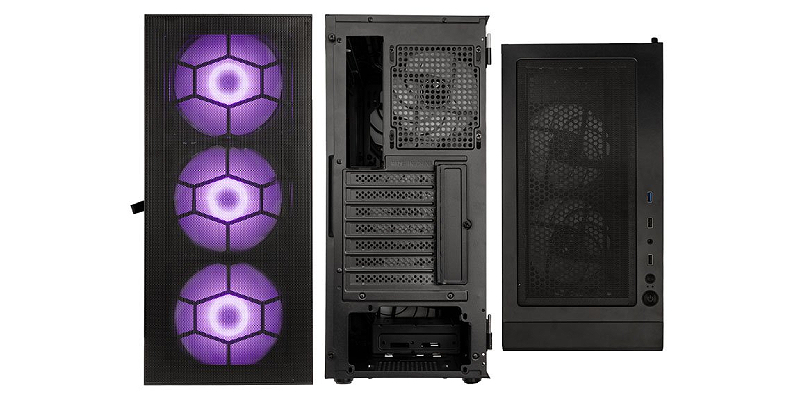 הפאנל הקדמי מצויד בשלושה מאווררי ARGB/PWM בקוטר 140 מ"מ,