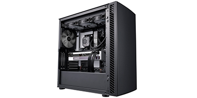 Distinctive front bezel design embedded with sound maze soundproofing technique, achieving balance between great airflow and low acoustic noise level Drastically reduces noise with integrated sound dampening material allocated on the front and side panels, top dust filter and bottom of the chassis |