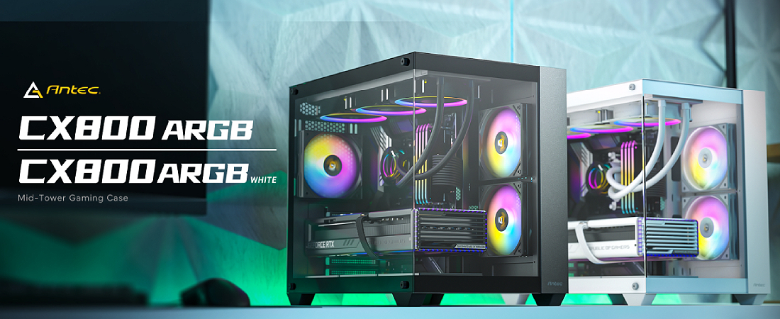 בזכות עיצוב נקי עם זכוכית מחוסמת, הפאנל הקדמי והצדדי של ה־CX800 ARGB מספקים תצוגה של רכיבי המחשב שלך,