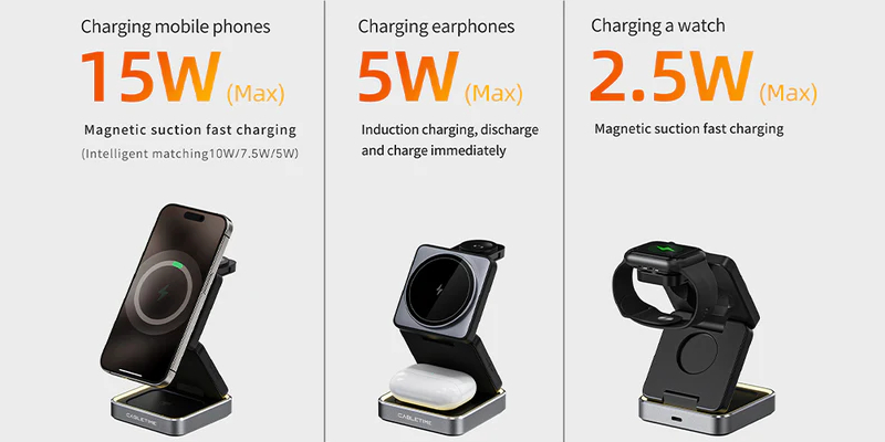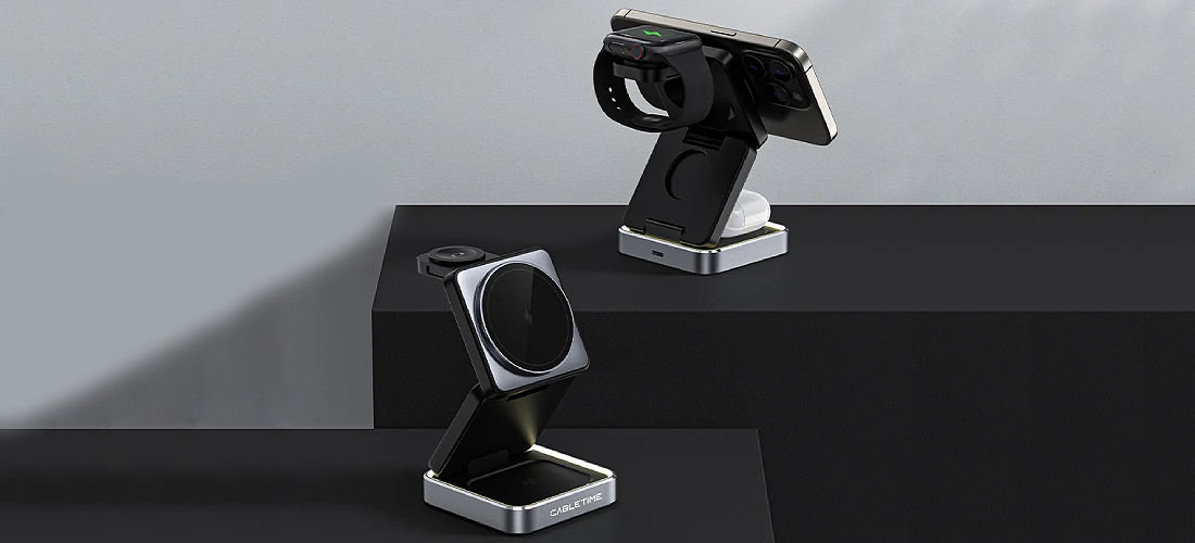 מעמד הטעינה האלחוטי המגנטי 3 ב-1 של CABLETIME הוא השותף האולטימטיבי לטעינה,