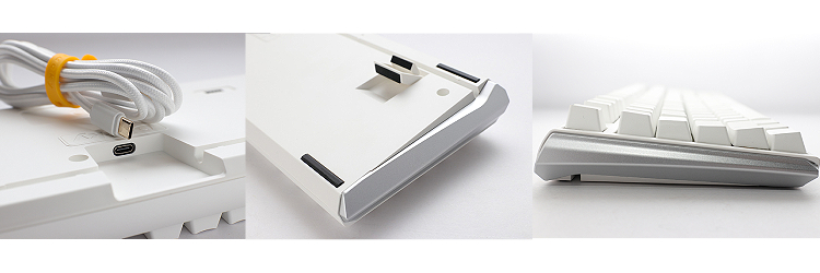 רגלי המקלדת הן דו-שלביות ומאפשרות להציב את המקלדת בשלוש זוויות הטיה שונות.