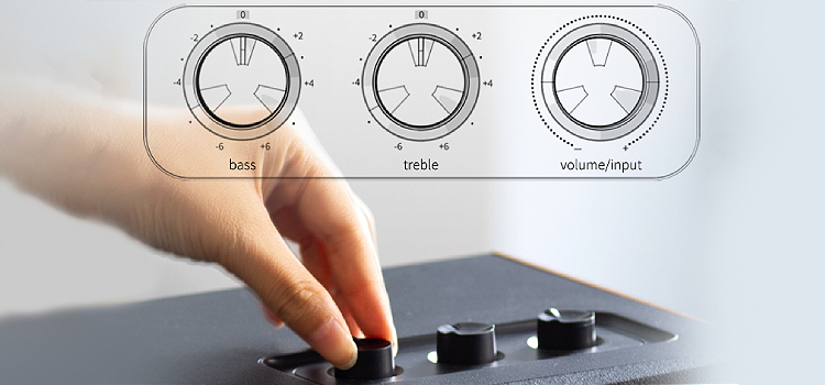 מעבר בין מקורות, כיוונון EQ ושינוי עוצמת הקול, כל זאת בסיבוב פשוט של הכפתורים בחלקו העליון של הרמקול.
