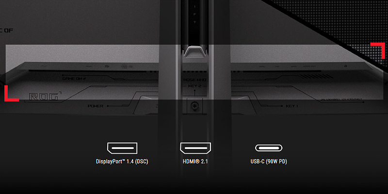 אפשרויות חיבור רחבות, כולל DisplayPort™ 1.4 (DSC), HDMI® 2.1, USB-C עם Power Delivery של 90W