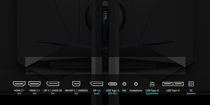 ה-AORUS FO27Q5P מצויד באפשרויות חיבור מתקדמות, כולל MiniDP 2.1 ו-DisplayPort 2.1, התומכים במגוון רחב של מכשירים.
