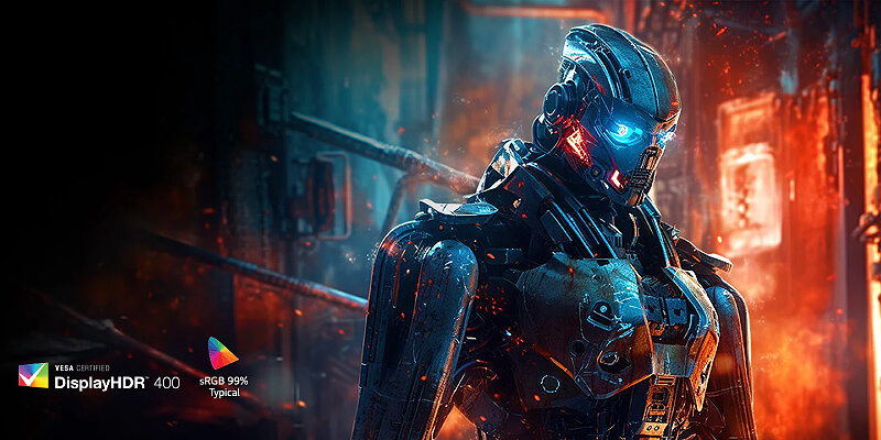 צג זה תומך בטווח צבעים רחב, sRGB 99% ו-VESA DisplayHDR™ 400,