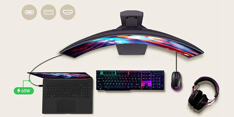 עם HDMI 2.1, DisplayPort 1.4 ו־USB Type-C (בהספק טעינה של 65W),