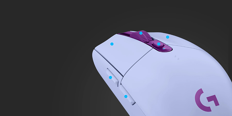 בנוסף, יש לחצן אמצעי, לחצן DPI ושני כפתורי צד – כולם ניתנים לתכנות דרך Logitech G HUB.