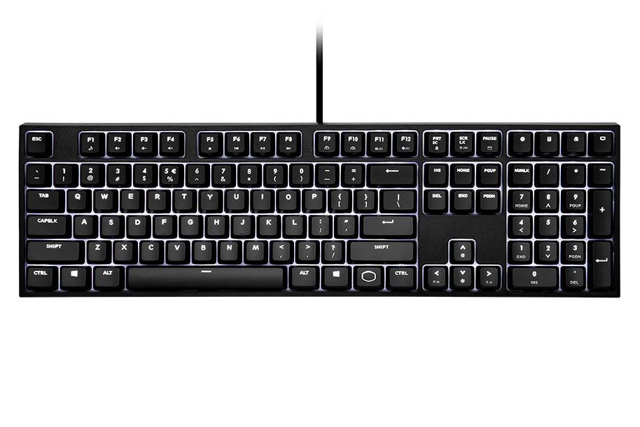 The CK320 Gaming Keyboard keeps it straightforward. The 108-key layout gives 4 extra shortcut keys for convenience, and Cherry MX switches provide reliable durability. Brilliant white LED backlighting is customizable and highlights the minimalistic design.