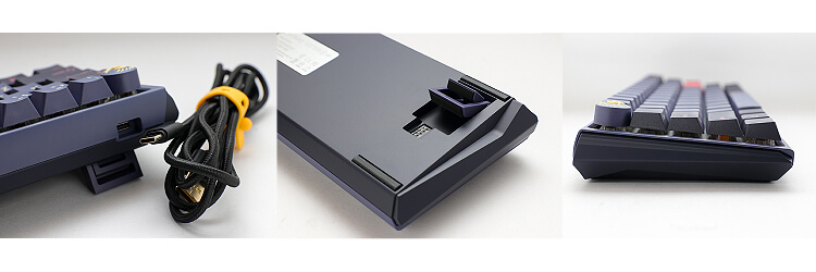 רגלי המקלדת הן דו-שלביות ומאפשרות להציב את המקלדת בשלוש זוויות הטיה שונות.