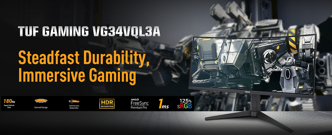 TUF Gaming VG34VQL3A הוא מסך גיימינג קעור בגודל 34 אינץ' Ultra Wide QHD (3440 x 1440)