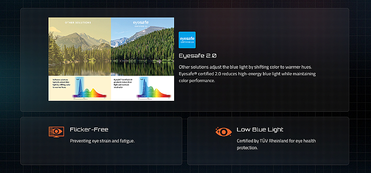 Eyesafe 2.0 - Eyesafe certified 2.0 מפחית אור כחול בעל אנרגיה גבוהה תוך שמירה על ביצועי הצבע.