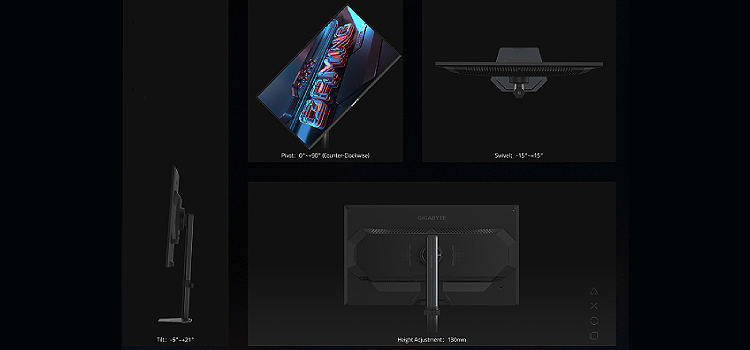 מסך הגיימינג של GIGABYTE כולל מעמד שתוכנן להציע מגוון רחב של התאמות הטיה וכוונון.