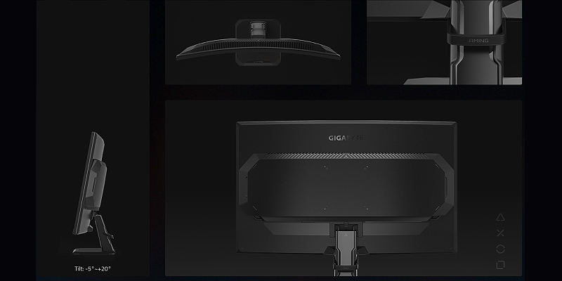 המסך של GIGABYTE כולל מעמד מתכוונן המאפשר התאמה מדויקת של זווית ההטיה לנוחות שימוש מקסימלית.