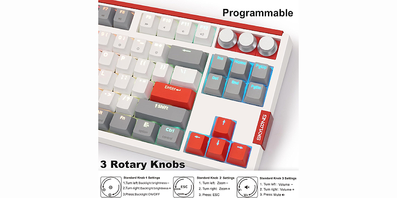 הכירו את המקלדת המכנית המתקדמת SKYLOONG GK87, המשלבת מקש רווח מפוצל לנוחות מקסימלית ותאורת RGB מרהיבה הניתנת להתאמה אישית.