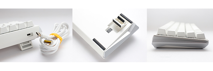 רגלי המקלדת הן דו-שלביות ומאפשרות להציב את המקלדת בשלוש זוויות הטיה שונות.