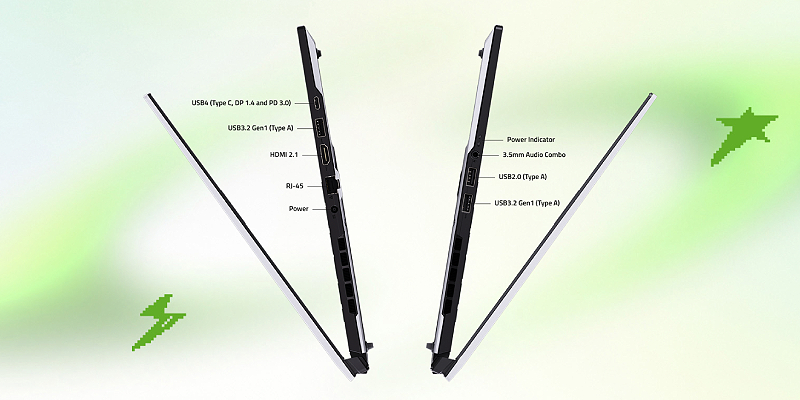 יציאת USB4 מסוג Type-C תומכת בקצב העברת נתונים של עד 40Gbps, תואמת למסכי DisplayPort ותומכת בטעינה מהירה עם Power Delivery 3.0.