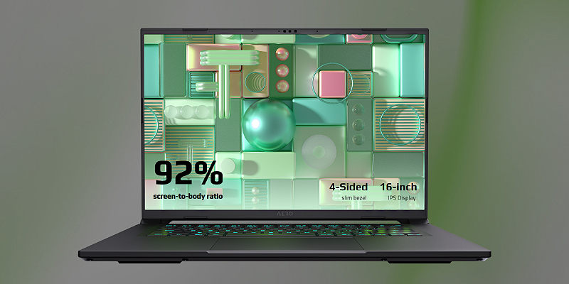 בזכות מסגרת דקה מארבעה צדדים, ה־AERO X16 מציג מסך בגודל 16 אינץ' עם יחס גוף־מסך של 92%.