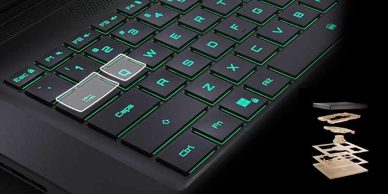 ה־AERO X16 כולל מקלדת Golden Curve עם כפתורים גדולים ועקומת לחיצה אופטימלית שמספקת חווית הקלדה שקטה ונוחה למשחק ולעבודה.