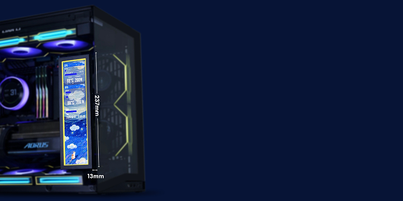 התקנה פשוטה ונקייה מאפשרת הצגת נתוני חומרה, מדיה מותאמת אישית או אנימציות, מבלי להעמיס על ה-GPU ומבלי לתפוס יציאות — לשדרוג גמיש ונוח של כל מערכת.