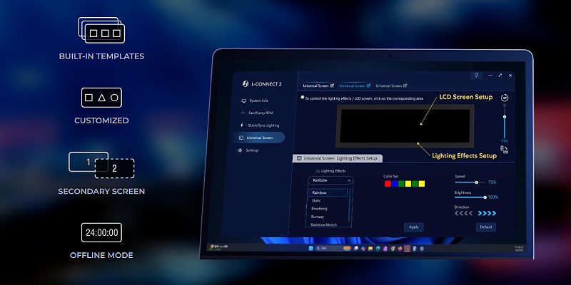 תאורת ARGB מובנית הנשלטת דרך L-Connect 3, יכולה להסתנכרן עם תאורת המערכת כדי ליצור חוויית תאורה אחידה ומרהיבה.