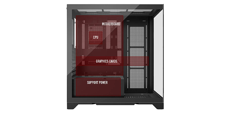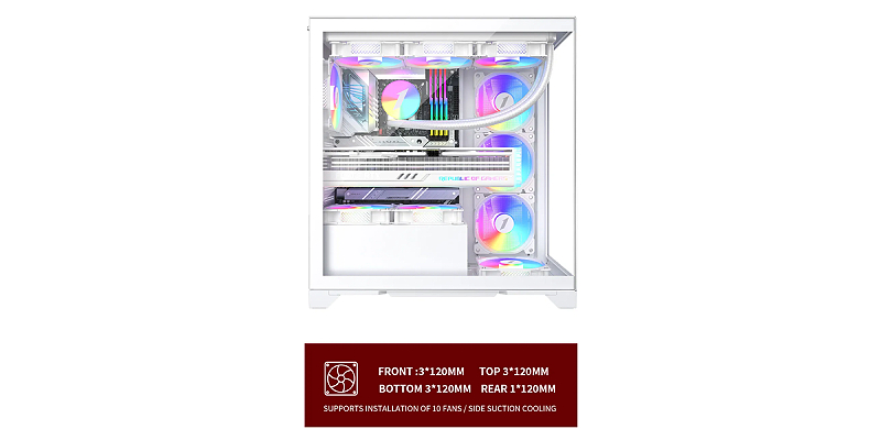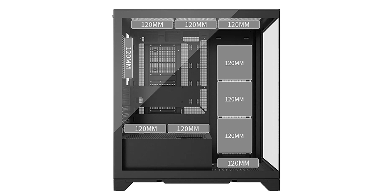 עיצוב הרשת של הפאנל החיצוני מאפשר התקנה של עד עשרה מאווררי 120 מ״מ, ויכול ליצור מערכת קירור חזקה.