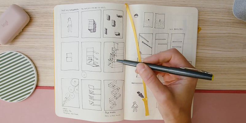 השתמש במצב התצוגה החדש כדי להטות את המצלמה כלפי מטה ולהציג סקיצות, עבודות בתהליך וחפצים אחרים על השולחן.