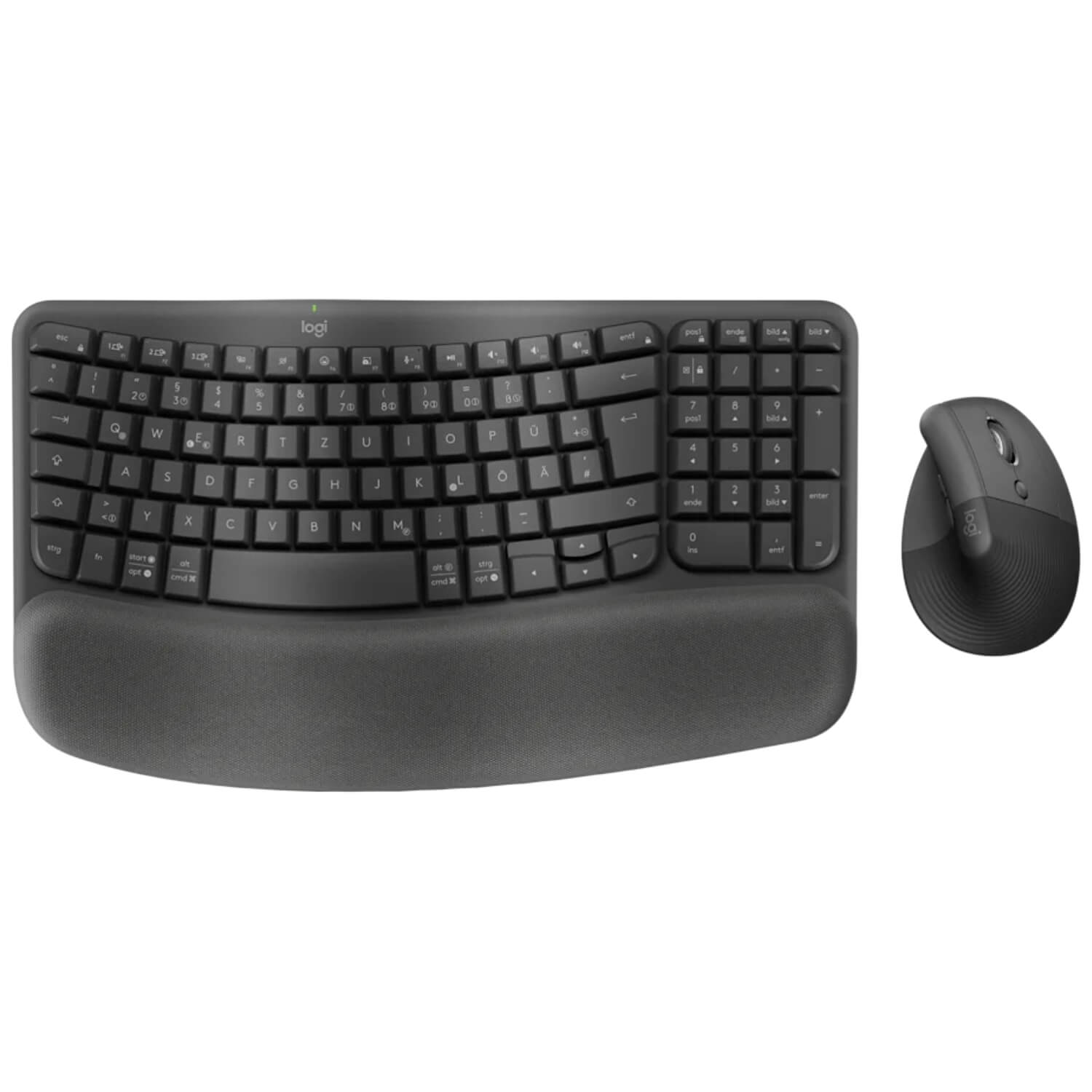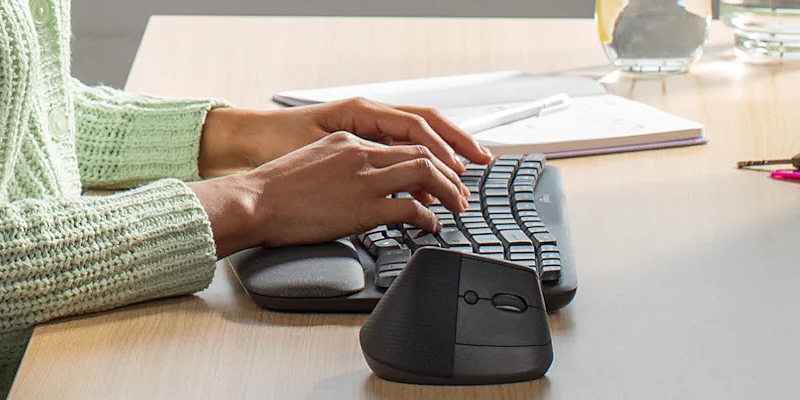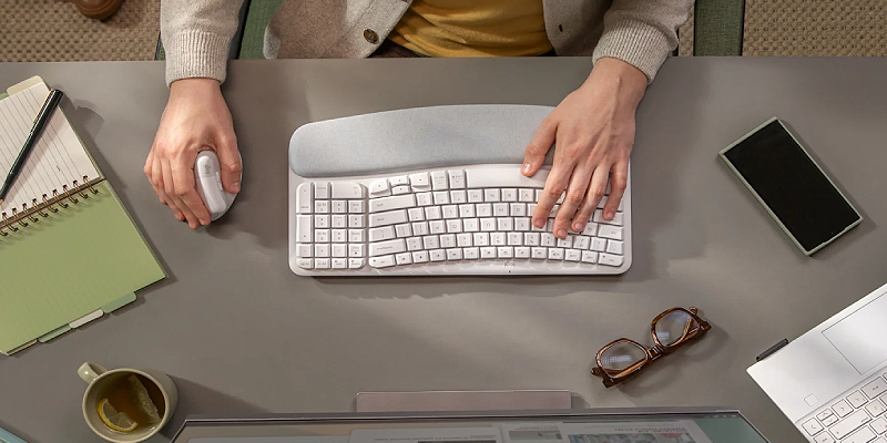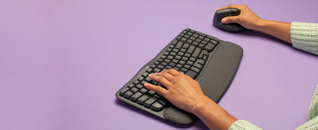 סט מקלדת ועכבר אלחוטיים ארגונומיים Logitech Wave Keys & Lift – כולל מקלדת עם משטח תמיכה מרופד לכף יד, ועכבר אנכי Lift,
