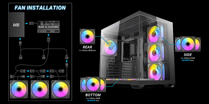 כולל 7 מאווררי ARGB בגודל 120 מ״מ
