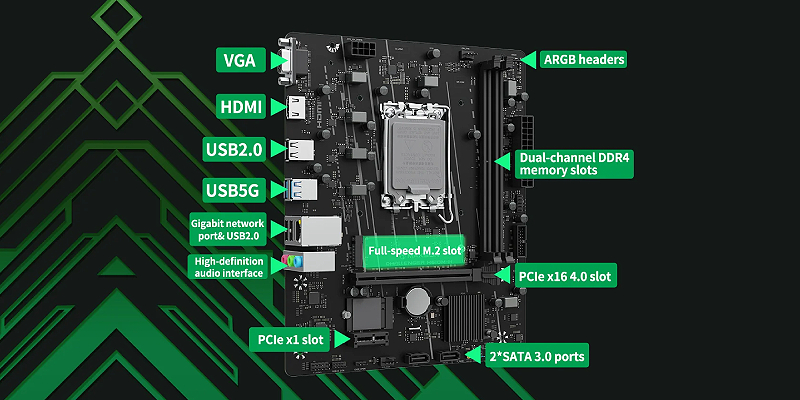 אפשרויות הרחבה גמישות – תמיכה בזיכרון DDR4 עד 64GB, חריץ M.2 וחריצי PCIe x16 / x1.