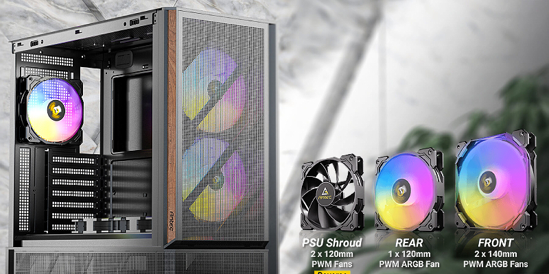 2 × מאווררי PWM בגודל 140 מ״מ בחזית, 2 × מאווררי PWM הפוכים בגודל 120 מ״מ מעל תא ספק הכוח, 1 × מאוורר PWM בגודל 120 מ״מ מאחור.