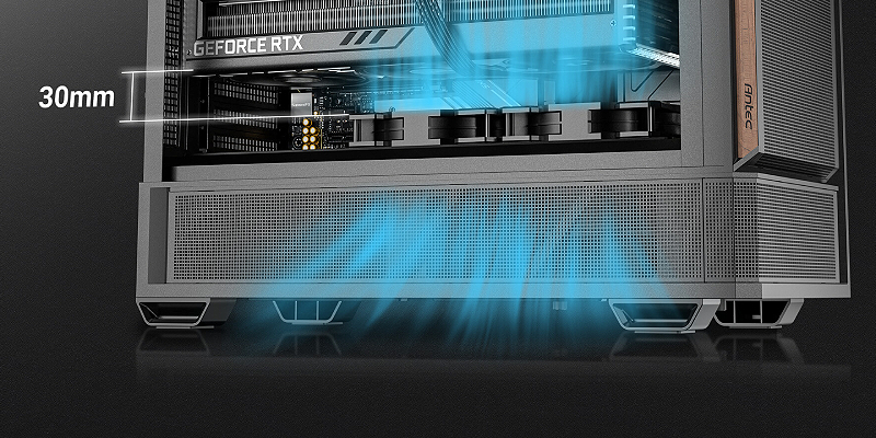 ומרווח של כ־30 מ״מ בין המאווררים התחתונים לכרטיס המסך מאפשר קירור ישיר ויעיל באמצעות מאווררים הפוכים.