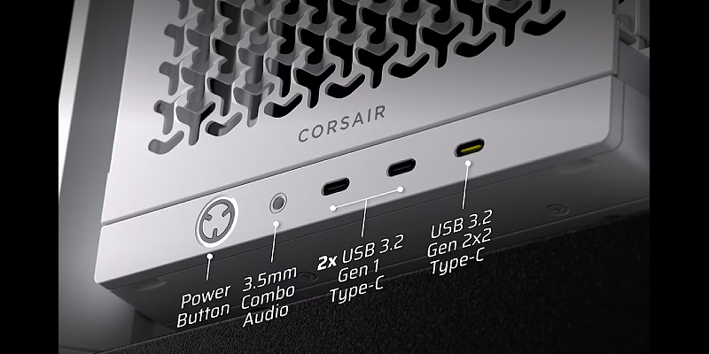 כולל יציאת USB 3.2 Gen 2x2 Type-C עם רוחב פס של 20Gb/s, שתי יציאות USB 3.2 Gen 1 Type-C עם רוחב פס של 5Gb/s, ושקע משולב לאוזניות/מיקרופון.