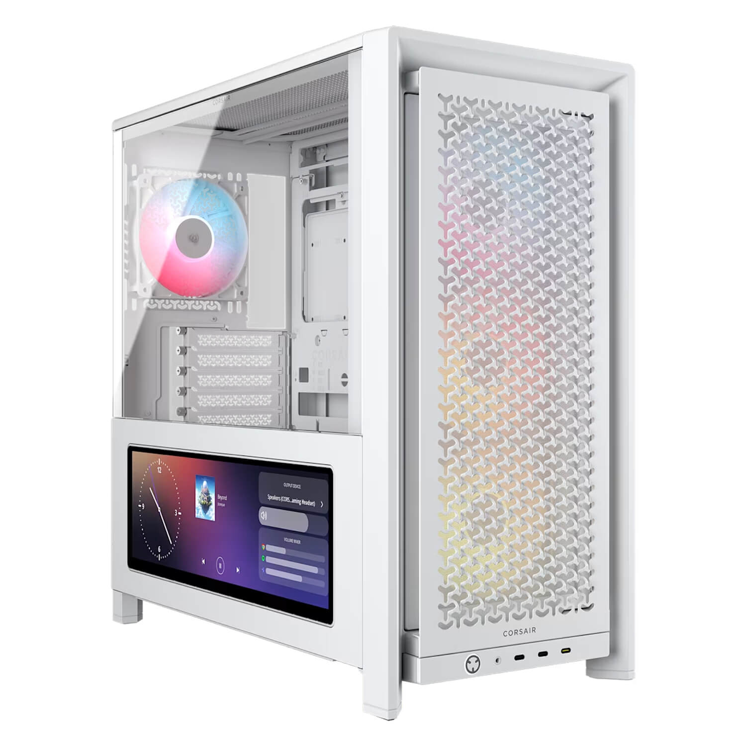 מארז מחשב FRAME 4000D LCD RS ARGB Premium מבית Corsair, בצבע לבן, גרסה משודרגת זו של FRAME 4000D כוללת שורה של שיפורים לביצועים מרביים, עם מסך מגע XENEON EDGE בגודל "14.5 אינץ' המותקן מראש, עוצמת קירור משופרת ופאנל חיבורים קדמי מעודכן למארז Mid-Tower אולטימטיבי, מגיע עם 4 מאווררי RS120 PWM ARGB מותקנים מראש. CC-9011327-WW