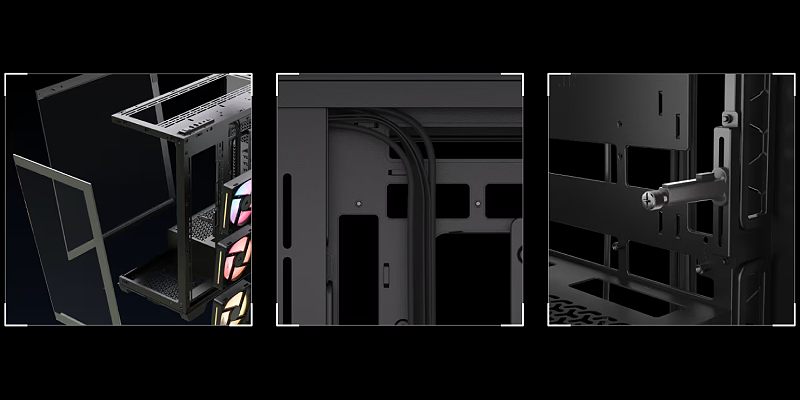 ניהול כבלים – מרווח פנימי של 38 מ"מ מאחורי לוח האם מאפשר ניתוב כבלים קל, וסט גומיות DoubleShot מבטיח מראה נקי ומסודר.