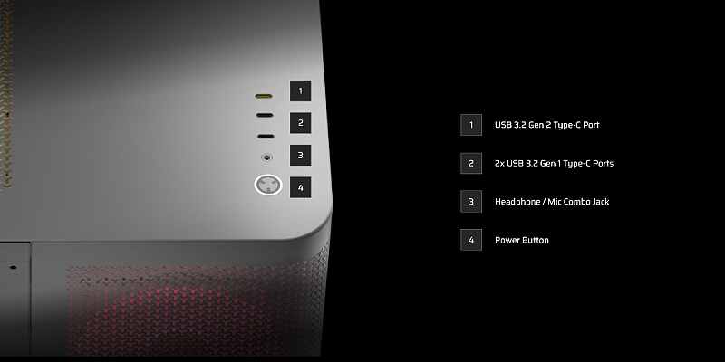שני פתחים יעודיים מנותבים לאספקת אוויר קר ישירות לכרטיס המסך לביצועים מרביים.