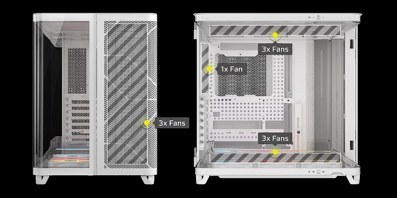 כולל 3 מאווררי יניקה 120 מ״מ ועוד מקום לעד 7 מאווררי 120 מ״מ נוספים לזרימת אוויר רצינית.