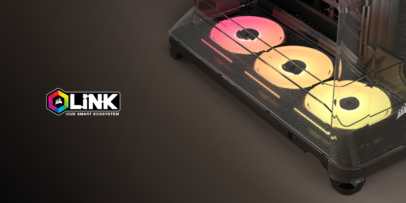 מאווררי iCUE LINK LX-R RGB בגודל 120 מ״מ מותקנים מראש בתחתית המארז, ומספקים קירור שקט ויעיל עם תאורת RGB מרשימה וללא הפרעות ויזואליות.