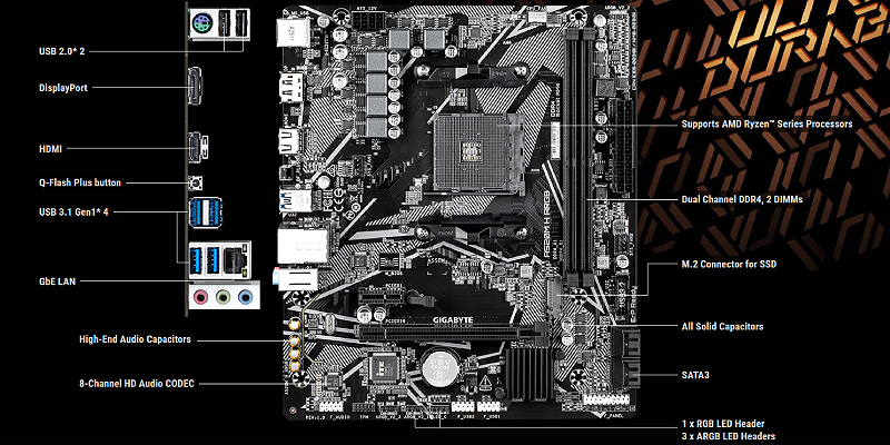 Supports AMD Ryzen™ 5000 Series/ Ryzen™ 5000 G-Series/ Ryzen™ 4000 G-Series and Ryzen™ 3000 and Ryzen™ 3000 G-Series Processors