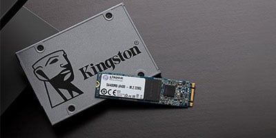 Kingston’s A400 solid-state drive dramatically improves the responsiveness of your existing system with incredible boot, loading and transfer times compared to mechanical hard drives. Powered by a latest-gen controller for read and write speeds of up to 500MB/s and 450MB/s1, this SSD is 10x faster than a traditional hard drive for higher performance, ultra-responsive multi-tasking and an overall faster system. Also more reliable and durable than a hard drive, A400 is available in multiple capacities from 120GB–1.92TB2.
