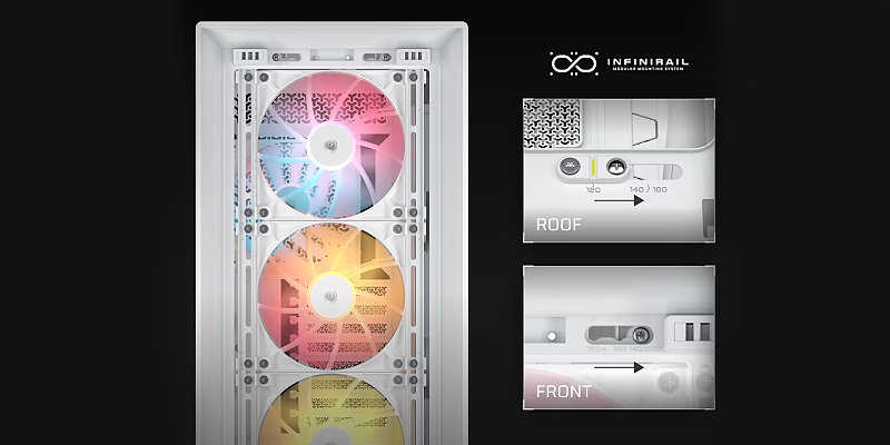 המגיע עם מערכת התקנת מאווררים InfiniRail, מערכת ניהול כבלים RapidRoute 2.0 ותמיכה בלוחות אם עם חיבורים הפוכים (Reverse).