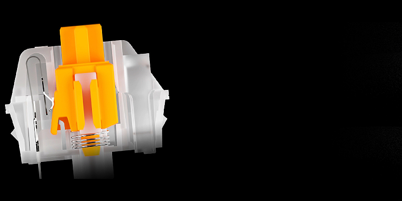 המתגים הכתומים, הטקטיליים והשקטים משומנים מראש להפחתת חיכוך ורעש.
