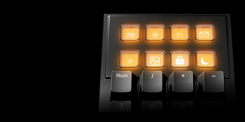 מקלדת Dark Mount המודולרית מציעה סט תכונות חסר פשרות, כולל 8 מקשים עם תצוגה ורכזת מדיה (Media Dock).