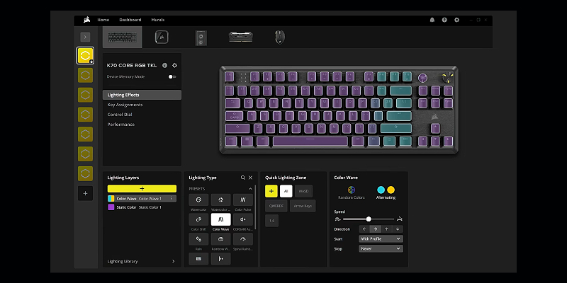 מקלדת הגיימינג Corsair K70 CORE TKL מציעה חוויית משחק והקלדה מדהימה בעיצוב קומפקטי.