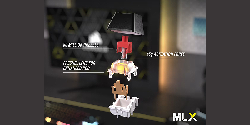 תהנה מהקלדה חלקה ויציבה בזכות מתגים ליניאריים CORSAIR MLX Red v2 משומנים מראש,