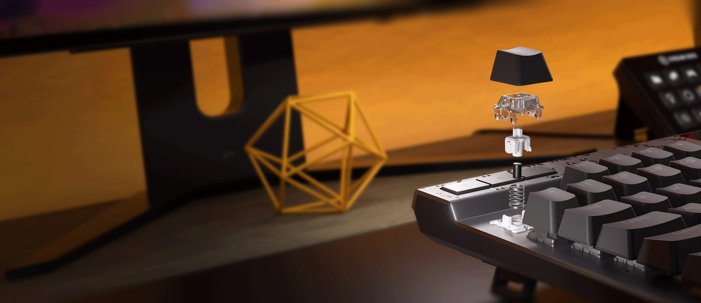 מתגי CORSAIR MGX ניתנים להתאמה מלאה ומאפשרים להגדיר את טווח הלחיצה, עבור הקלדה מהירה או מדוייקת במיוחד. מתכוונן בין 0.4 מ"מ ל-3.6 מ"מ, בצעדים של 0.1 מ"מ.